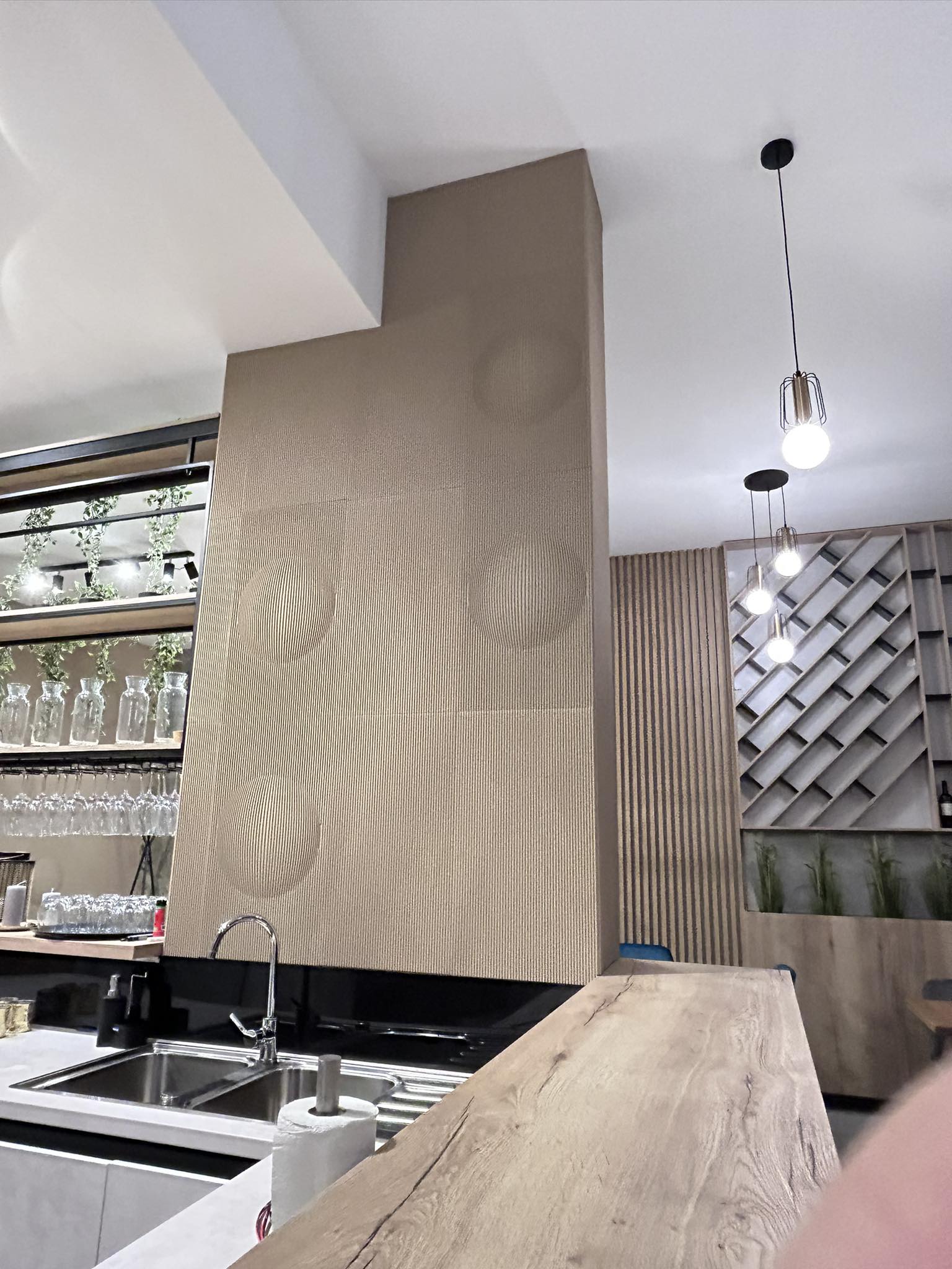 A VII. kerület szívében található és kizárólag borkóstolók és zártkörű rendezvények helyszínéül szolgáló borozó tulajdonosa kért meg a helyiség akusztikai problémáinak orvoslására.