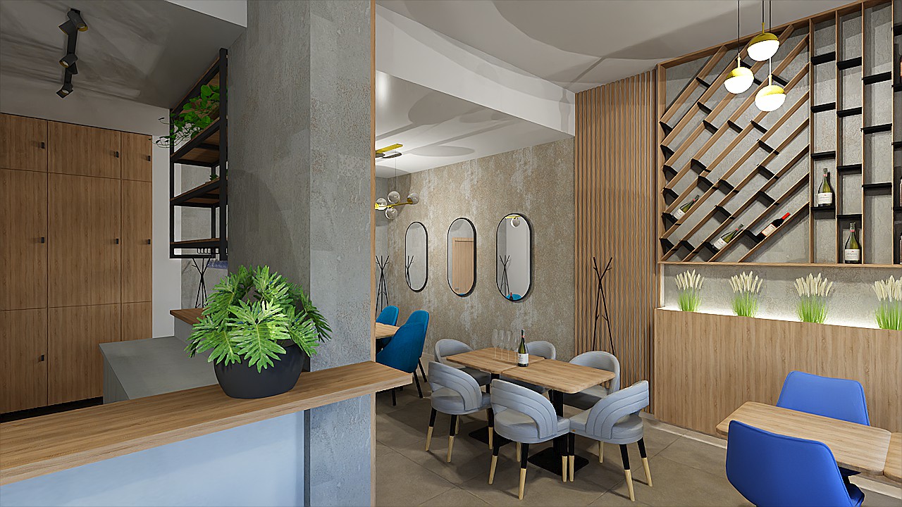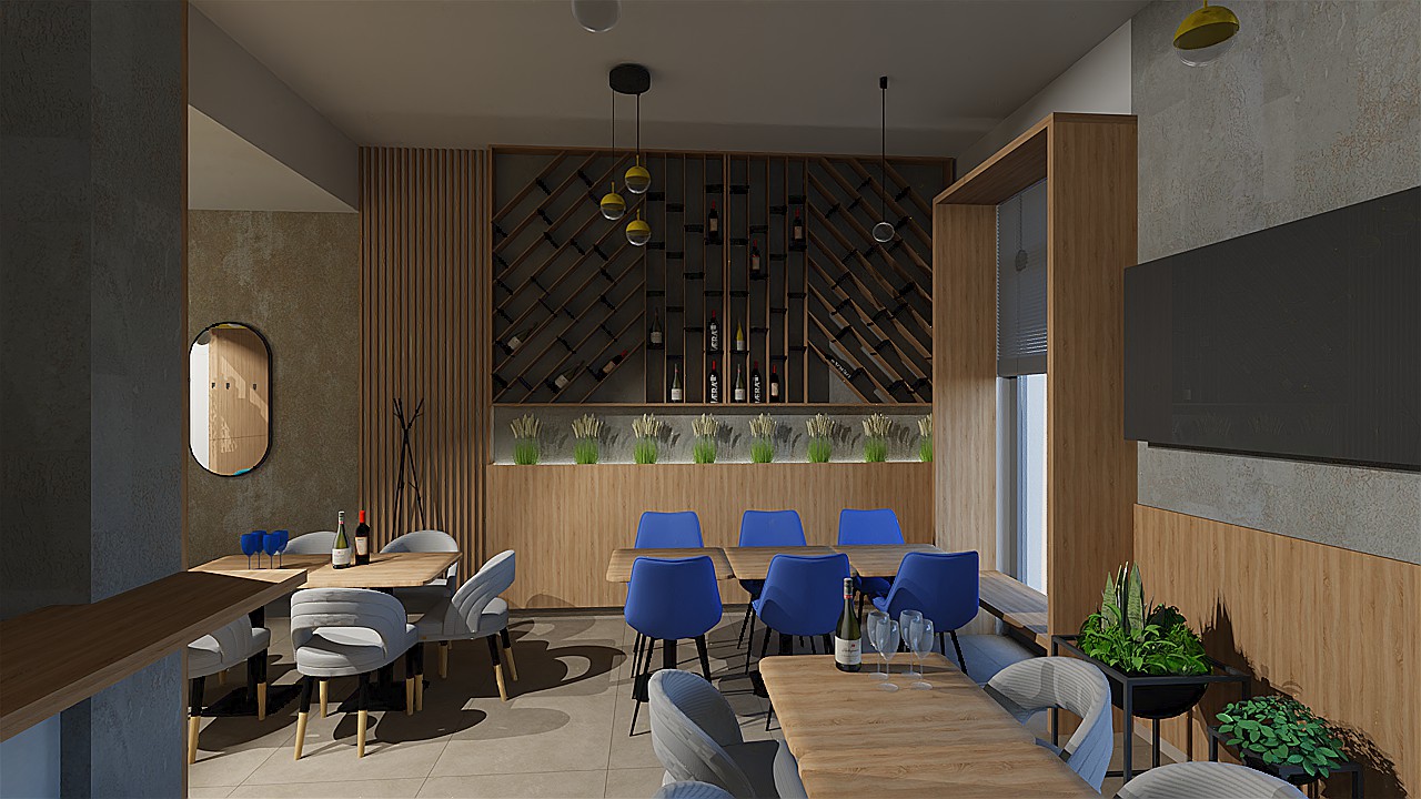 A borozó a közelmúltban épült, és a tulajdonosok elképzelései szerint került kialakításra a belső tér. Azonban akadtak még hiányosságok, melyekre megoldást kerestek. Időnként sokkal nehezebb egy már meglévő design-ba simuló kiegészítéseket, javításokat tervezni, mint amikor a fehér falakkal kezdődik a tervezés. Az EcoDesign segítségével azonban sikerült megvalósítani néhány rendhagyó ötletemet is.